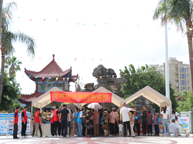 为深入推进全民禁毒宣传教育工作,2025年6月20日,翁垟街道禁毒办联合霍邱县驻乐清市流动人口党委党员禁毒志愿者基地、霍邱驻乐清工作站艾滋病健康教育基地在后桥公园开展“防范青少年药物滥用”户外宣传活动。