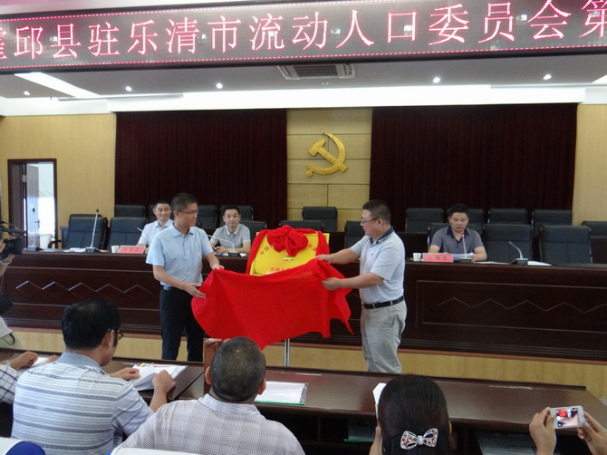 在霍邱、乐清两县市的共同关心和支持下,2015年8月9日上午9时,伴随着肃穆雄壮的国歌,中国共产党霍邱县驻乐清市流动人口委员会第一次全体会议在乐清市翁垟街道五楼会议室隆重召开。霍邱县卫计委副主任王晓明、范桥镇党委副书记、镇长陈宏祥、党委委员刘培青、翁垟街道党工委书记朱小恭、霍邱驻乐清流动党支部书记陈孝明等出席会议。大会由范桥镇党委委员刘培青主持。