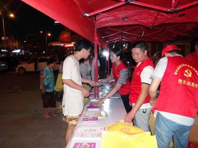 为进一步丰富安徽籍在乐务工流动人口的精神文化生活,为他们提供一个展示自我的平台,2016年8月19日晚上,安徽省流动人口服务管理乐清市工作站、霍邱县驻乐清市流动人口党委翁垟“支部+服务点”在翁垟街道莹冉超市门口开展卫生、计生、司法、禁毒等多种形式户外文艺宣传活动。 活动中,工作站人员向过往的流动人口讲解卫生、计生、司法、禁毒等法律法规知识,并发放《流动人口宣传服务》手册、《农民工维权手册》500余份、反邪教警示教育宣传材料300余份、流动人口服务指南400余份,活动还向过往的流动育龄妇女发放避孕药具50多盒,除此之外,工作站人员还现场向安徽籍流动人口解答卫生计生劳动维权、房屋租赁、法律援助、户口政策等政策法规以及艾滋病预防、生殖健康、二胎政策、消费维权等多项问题。 工作站为在乐务工的老乡们搭建了一个露天的多媒体平台,使他们在工作之余,能够放松身心。老乡们热情高涨,沉浸在个人演唱中,通过搭建有效的平台,创新了一系列形式新颖、内容丰富、健康向上的精神文化活动载体,以广大流动人口为服务中心,不仅丰富了安徽籍在乐务工流动人口精神文化生活,也进一步全面提高了安徽籍流动人口卫生、计生、司法、禁毒等法律法规知识,使广大安徽籍在乐务工的流动人口感受到市民均等化待遇和真正的实惠。