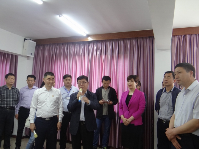 陈孝明书记向参观领导和参训人员介绍“党委+工作站”情况