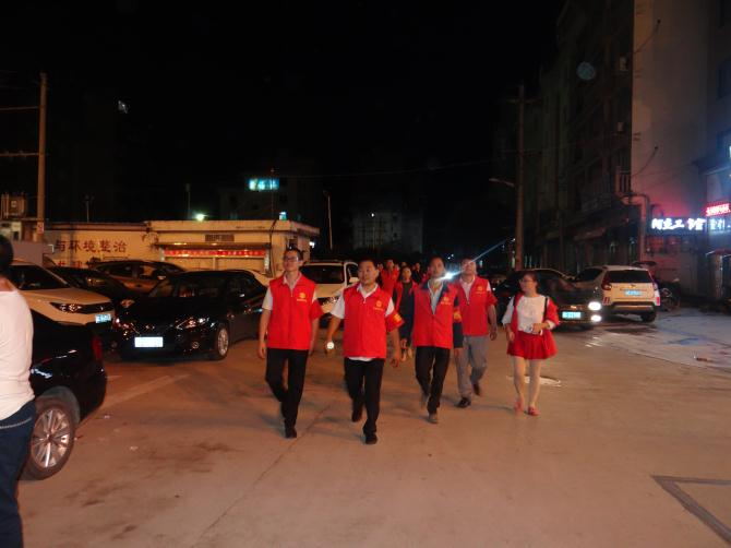 为迎接党的十九大胜利召开,2017年10月16日晚,翁垟街道总工会、霍邱县驻乐清市流动人口党委联合开展以“护航十九大、党员志愿者在行动”为主题的夜间巡防活动,总工会职工志愿者、霍邱籍党员志愿者共20多名参加。 志愿者们胸前佩戴红闪闪的党徽,臂上带着治安巡逻标志从街道出发,由街道总工会蒋主席带队,精神抖擞地穿梭在翁垟的兴茂路、柳翁路等辖区内重点路段,后到达翁垟工业区,乐商创业园。此次巡逻活动历程2小时,行程约4公里。成为翁垟街道护航十九大一道亮丽的风景线。 最后,总工会蒋主席强调,要坚持专群结合,群防群治,积极动员广大群众参与进来,扩大志愿者队伍。汇聚起维护社会和谐稳定的强大力量,以优异的成绩迎接十九大的胜利召开。