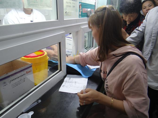 体检第一天,安徽籍在乐新居民就早早来到体检地点,在医务工作人员的指导下,填表、建卡并有秩序接受肝功能、乙肝表面抗原、心电图、血常规、血压测量等体检项目。