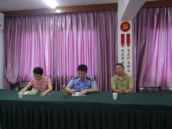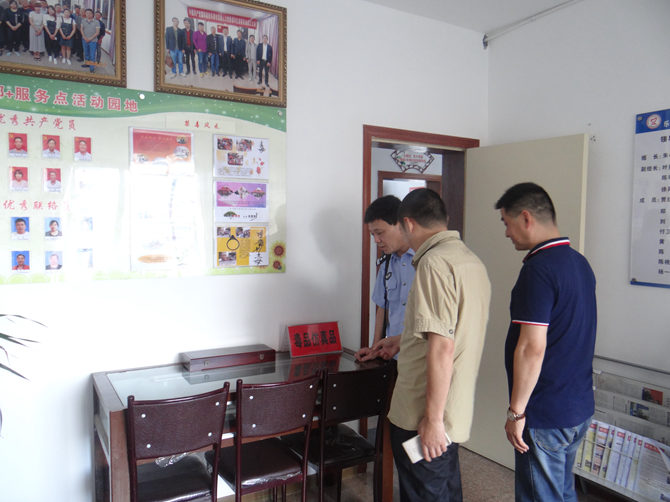 在党委书记陈孝明的介绍下,谷局长先后参观了党员禁毒志愿者基地、乐清市孝明调解工作室等各职能办公室。并对各办公室的主要功能做了全面的讲解。随后针对如何进一步做好社会治安综治维稳工作召开了座谈会。