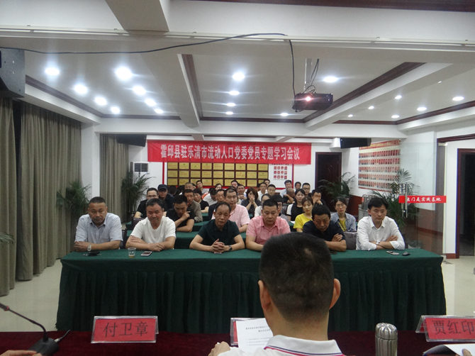 2019年6月22日,霍邱县驻乐清市流动人口党委召开党员专题学习会议。党委书记陈孝明主持会议。霍邱籍流动党员、预备党员、入党积极分子参加学习。