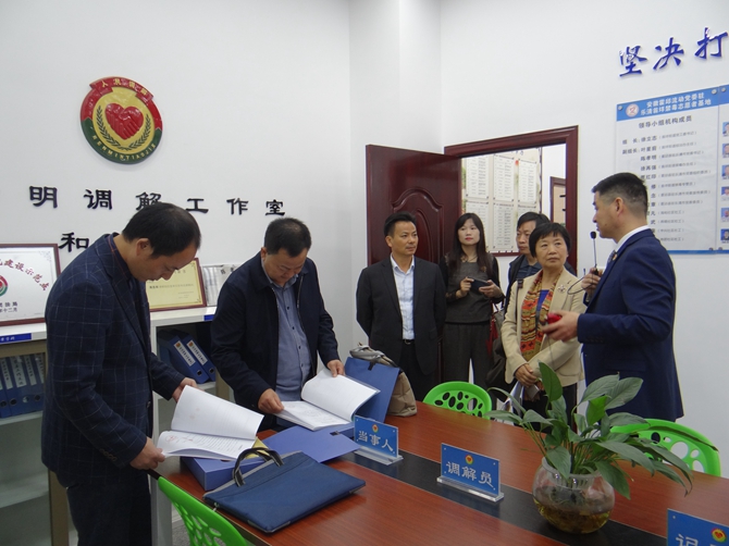 叶主任一行在党委书记、协会联合会会长陈孝明的带领下先后参观了户外宣传栏、综合服务大厅、向日葵聊天室、综治驿站等各职能办公室,并浏览了党建、司法、协会联合会等相关台账资料。随后就如何进一步做好皖籍流动人口区域协作均等化服务管理工作召开了座谈会。