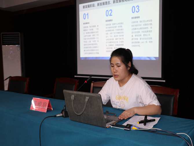 陈维庭通过PPT的方式,详细说明了新发展阶段、新发展理念、新发展格局的时代意义,解释了如何准确把握新发展阶段、深入贯彻新发展理念、加快构建新发展格局等问题。她表示只有在始终洋溢着蓬勃生机活力的理论和实践互动发展的过程中,不断深化对社会主义建设规律的认识,才能不断提高经济社会发展。