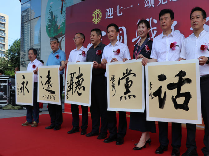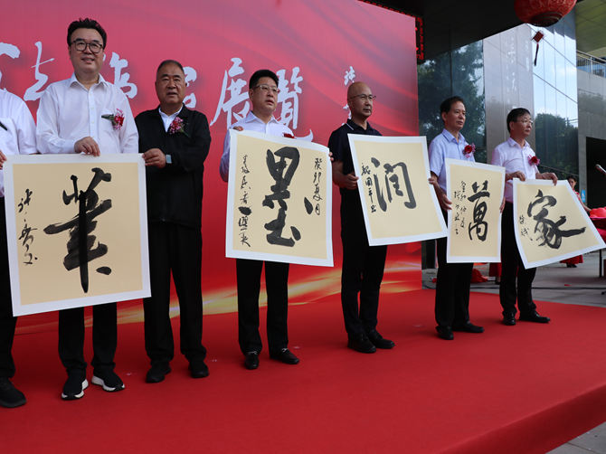 活动现场,由十名书法家书写“永远听党话、笔墨润万家”;温州市人大常委会副主任、总工会主席张洪国宣布展览正式开幕。