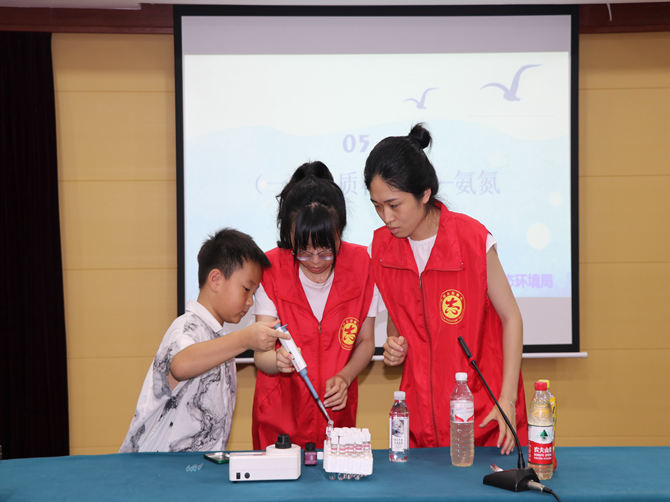 王科长从“五水共治”知识普及入手,通过讲解PPT、志愿者现场水质检测、水过滤科学小实验、绘制“节水护水”主题画等方式,讲解了“五水共治”的重要性,引导新居民子女们树立节约用水、不乱排污水、保护水资源等科学理念。还将节水小妙招融入其中,让小朋友们能更加深刻记住爱水节水小知识,并鼓励小朋友们从身边小事做起,养成保护水资源的良好习惯。