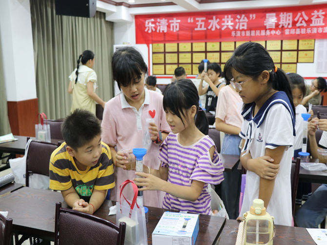 为提高新居民子女的护水意识,号召和带动身边人参与到“五水共治”行动中来。2023年8月15日,霍邱县驻乐清市流动人口党委、安徽省驻浙江省乐清市皖籍农民工综合服务站联合乐清市新居民中心特邀乐清市生态环境局科长王玉微开展乐清市“五水共治”暑期公益课堂,40名新居民子女参加。