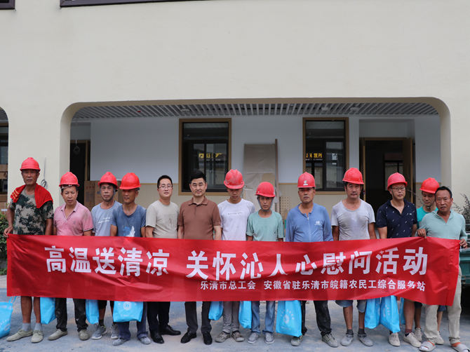 为保障在高温下坚守岗位的户外劳动者能清凉度夏与安全生产作业,2023年8月17日,乐清市总工会联合安徽省驻浙江省乐清市农民工皖籍综合服务站开展“炎炎夏日送清凉”高温慰问活动。