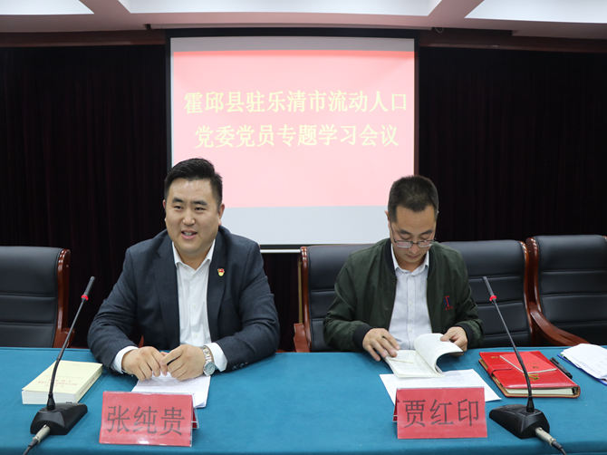为深入学习贯彻习近平新时代中国特色社会主义思想,2023年11月22日,霍邱县驻乐清市流动人口党委在三楼会议室召开党员专题学习会议,党委副书记贾红印主持会议,党委委员张纯贵带领学习,50名党员参加。