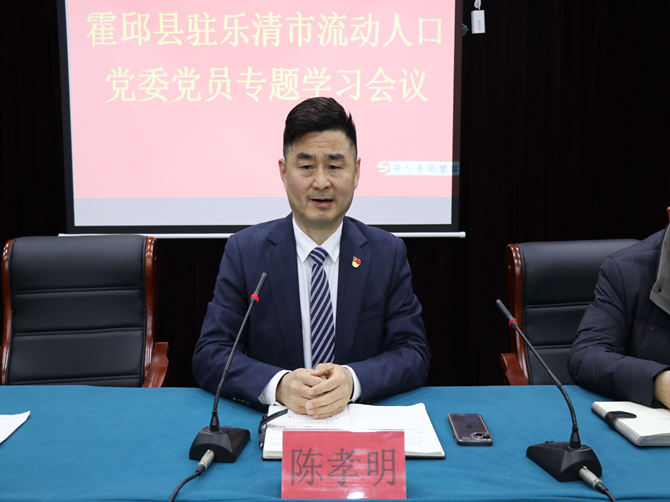 2024年2月29日晚上,霍邱县驻乐清市流动人口党委在三楼会议室召开党员专题学习会议,党委副书记贾红印带领学习,50名党员代表参加。