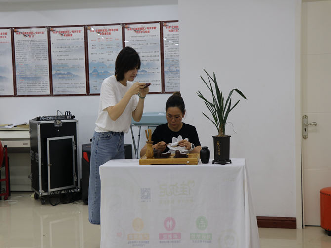 课堂上,高级讲师周忠锈从构图、拍摄技巧、后期剪辑制作等方面向大家讲解短视频制作的方法,并结合案例分享,给予实用的建议,让大家更直观地了解短视频的制作技巧和方法。现场的学员们兴致勃勃地进行实操练习,老师手把手指导教学、答疑解惑,参训的学员们也积极和老师互动讨论。