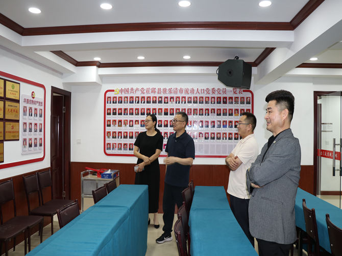 翁晓丽一行在党委书记陈孝明的陪同下先后参观了综合服务大厅、新业态初心驿站、综治驿站、母亲学堂、新业态劳动者服务中心工会委员会等各职能办公室,浏览了党建等相关台账资料,并在一楼会议室召开了座谈会。