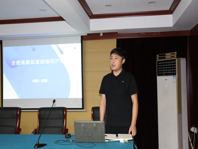 随后,杨天江通过PPT讲解的方式,分别从园区概况、环境资源、产业布局等方面详细地说明了霍邱现有的招商投资环境,充分展现家乡“地上有人、地里有粮、地下有矿”的三大经济发展优势。
