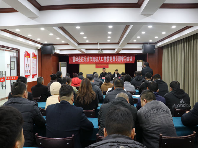 2024年12月22日,霍邱县驻乐清市流动人口党委在三楼会议室召开2024中央经济工作会议精神党员专题学习会,党委书记陈孝明主持会议,党委委员付卫章带领学习,70名党员参加。
