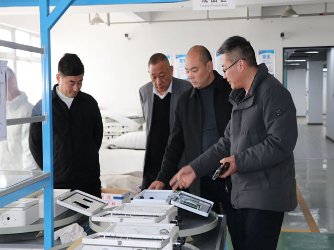 赵孝强、陈孝明等一行,在企业负责人的陪同下参观了企业的产品展示区、生产车间、质检中心、高新技术区等地,并在座谈中详细了解了企业运营理念、产业链分布、发展情况和返乡发展意愿等方面情况。