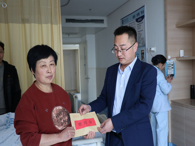 “党组织就是在外老乡的‘娘家人’,有困难我们一起扛!”慰问现场,党委副书记贾红印将6000元慰问金交到刘某手中,并详细了解治疗进展和家庭需求,叮嘱他们要安心治疗。刘某含泪致谢:“没想到在异乡遭难时,是家乡党组织伸出援手,这笔钱救急又暖心!”