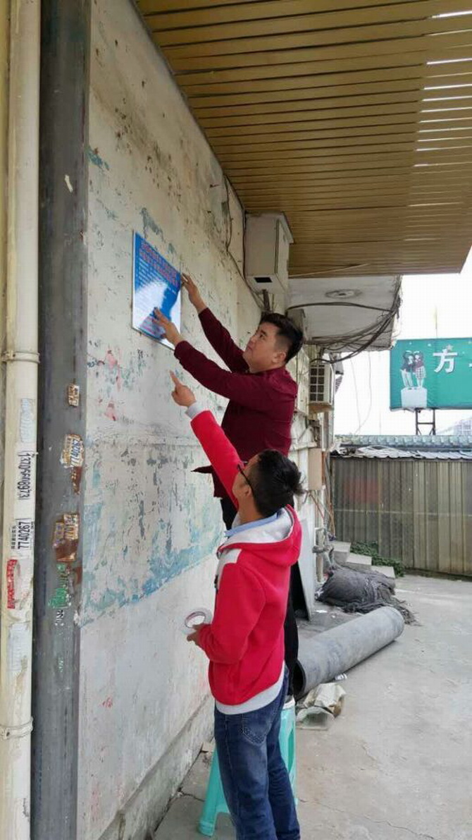 为全面推进安徽省.浙江省流动人口区域协作乐清市工作站的服务工作,扩大工作站的社会影响力,2015年10月28日上午,乐清市工作站工作人员前往乐清市各镇街道张贴工作站服务项目标牌,本次活动主要在安徽籍务工群众较为集中的地方张贴服务标牌,通过这种形式有效的提高了工作站的宣传力度,也增强了安徽籍务工群众对工作站的服务项目的了解。