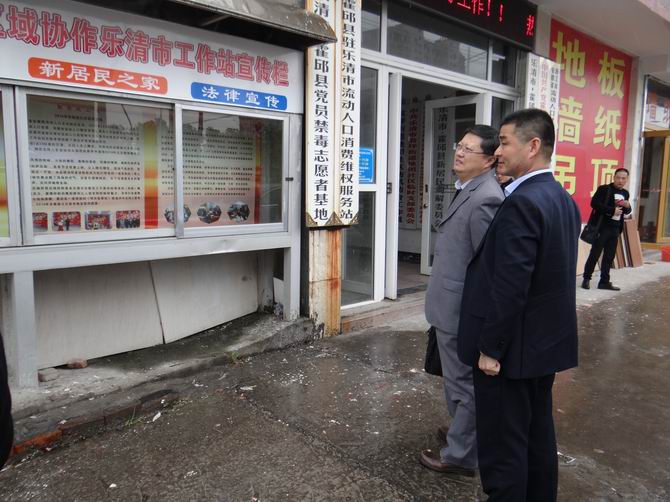 王县长一行在工作站负责人陈孝明的介绍下先后参观了安徽省流动人口服务管理乐清市工作站和霍邱县驻乐清市流动人口党委柳市“支部+服务点”并召开了座谈会。乐清市柳市镇卫生计生分局副局长倪建光、乐清市卫计局流动办主任李炯等参加座谈。 座谈会上,工作站负责人陈孝明首先详细汇报了工作站成立以来各项服务管理工作的开展情况。霍邱县卫计委主任陈清平进一步强调了拓宽卫生、计生均等化服务的必要性并提出几点意见:1、健全网络、落实“四位一体”全面工作;2、扩宽服务、切实发挥“小平台、大作用”工作效益;3、进一步健全工作制度。