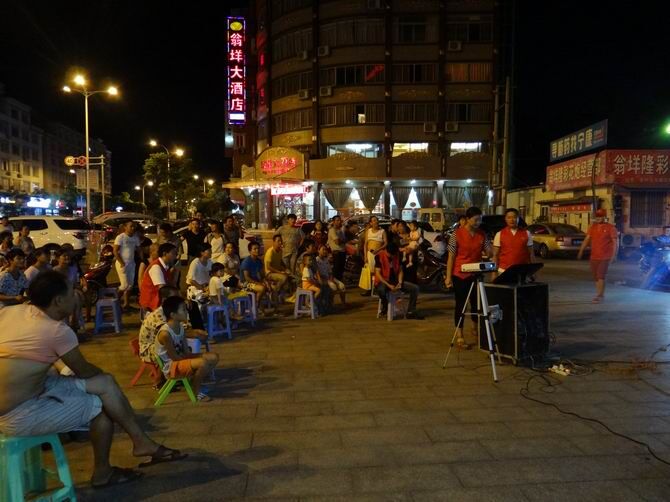 为进一步丰富安徽籍在乐务工流动人口的精神文化生活,为他们提供一个展示自我的平台,2016年8月19日晚上,安徽省流动人口服务管理乐清市工作站、霍邱县驻乐清市流动人口党委翁垟“支部+服务点”在翁垟街道莹冉超市门口开展卫生、计生、司法、禁毒等多种形式户外文艺宣传活动。 活动中,工作站人员向过往的流动人口讲解卫生、计生、司法、禁毒等法律法规知识,并发放《流动人口宣传服务》手册、《农民工维权手册》500余份、反邪教警示教育宣传材料300余份、流动人口服务指南400余份,活动还向过往的流动育龄妇女发放避孕药具50多盒,除此之外,工作站人员还现场向安徽籍流动人口解答卫生计生劳动维权、房屋租赁、法律援助、户口政策等政策法规以及艾滋病预防、生殖健康、二胎政策、消费维权等多项问题。 工作站为在乐务工的老乡们搭建了一个露天的多媒体平台,使他们在工作之余,能够放松身心。老乡们热情高涨,沉浸在个人演唱中,通过搭建有效的平台,创新了一系列形式新颖、内容丰富、健康向上的精神文化活动载体,以广大流动人口为服务中心,不仅丰富了安徽籍在乐务工流动人口精神文化生活,也进一步全面提高了安徽籍流动人口卫生、计生、司法、禁毒等法律法规知识,使广大安徽籍在乐务工的流动人口感受到市民均等化待遇和真正的实惠。