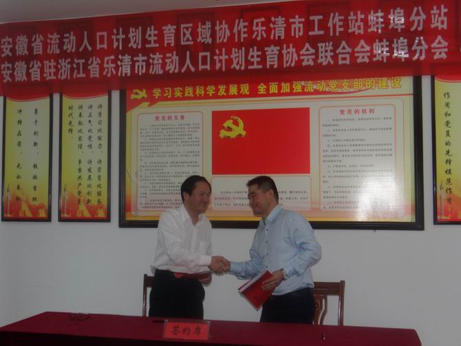 | 安徽省·浙江省流动人口计划生育区域协作乐清市工作站蚌埠市分站、安徽省驻浙江省乐清市流动人口计划生育协会联合会蚌埠市分会挂牌成立 |