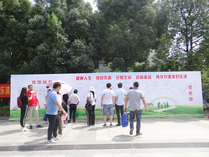 活动现场举行了“健康人生 绿色无毒 珍惜生命 远离毒品 携手共进建美好乐清”的签名活动。