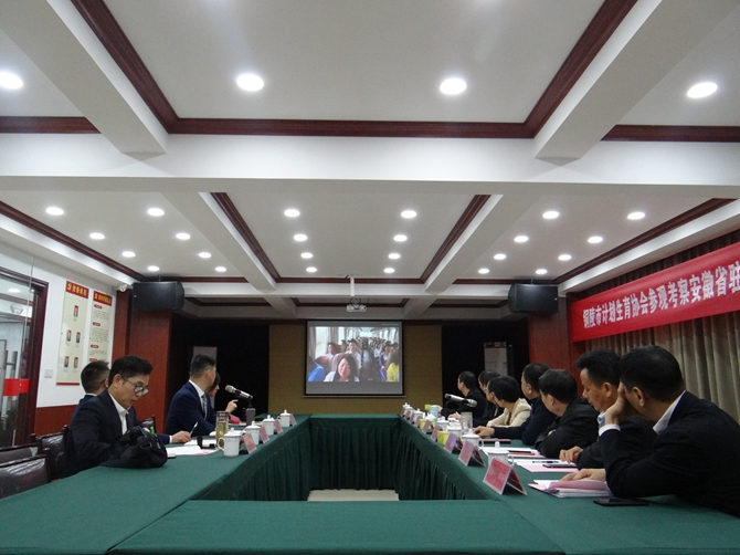 叶主任一行在党委书记、协会联合会会长陈孝明的带领下先后参观了户外宣传栏、综合服务大厅、向日葵聊天室、综治驿站等各职能办公室,并浏览了党建、司法、协会联合会等相关台账资料。随后就如何进一步做好皖籍流动人口区域协作均等化服务管理工作召开了座谈会。