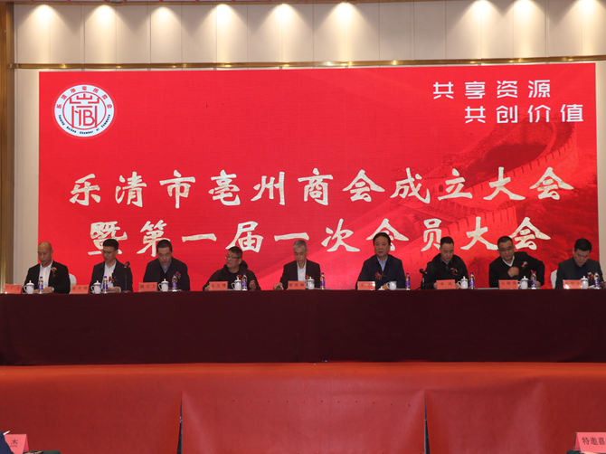 2023年2月27日,乐清市亳州商会成立大会暨一届一次会员大会在乐清市新金龙酒店二楼会议室隆重召开。乐清市人大常委会副主任廖凯峰、 乐清市工商联副主席兼秘书长顾立文、亳州市谯城区政协副主席吴浩、亳州市工商联综合科科长申讯等领导出席大会,安徽省驻浙江省乐清市皖籍农民工综合服务站站长、霍邱县驻乐清市流动人口党委书记陈孝明应邀出席会议。200多名会员参加会议。