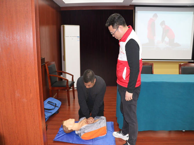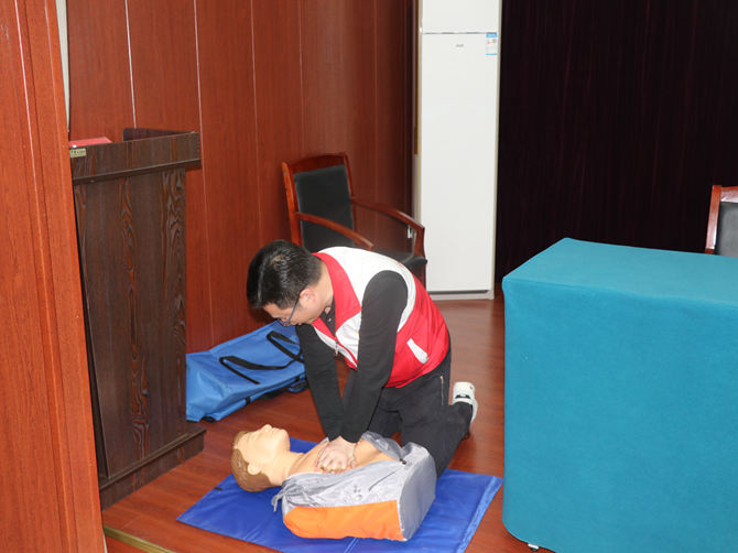 会上,朱老师以PPT的形式,结合生动的案例和视频,深入浅出的讲解了红十字会运动的起源、主要工作职责、各类急救知识、心肺复苏技术要点、胸外心脏按压要领、AED的使用方法及注意事项等内容。