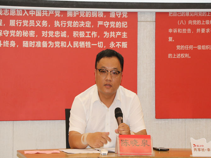 会议上,陈晓泉带领流动党员重温入党誓词,并以“流动的旗帜,坚强的壁垒”为主题做党课教育宣讲。他表示流动党员要多融入当地党组织,要多参与柳市建设,当地党组织要多关心务工人员,共同为柳市发展贡献力量。