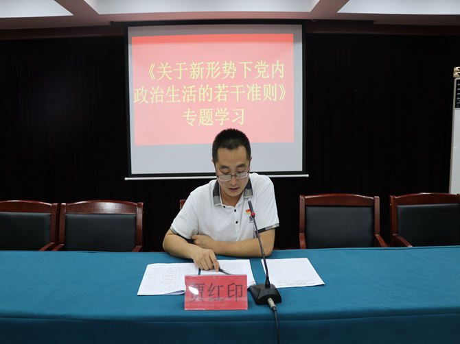 下午,贾红印带领学习《关于新形势下党内政治生活的若干准则》,明确了从严治党必须从党内政治生活严起,要进一步坚定理想信念,严明党的政治纪律,永葆党的先进性和纯洁性。