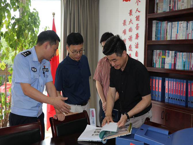 谢升明一行在党委书记陈孝明的带领下先后参观了综合服务大厅、综治驿站、智慧党建、母亲学堂、党员活动室等各职能办公室,浏览了党建等相关台账资料,并在二楼会议室召开了座谈会。