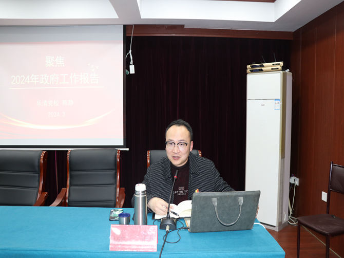 陈静在讲座中带领学习全国人大十四届二次会议基本情况,并从2023年政府工作回顾、2024年经济社会发展总体要求和政策趋向、2024年政府工作任务等方面进一步深化了对此次两会报告精神的理解。他表示,今年的全国两会是在新中国成立75周年,奋力实现“十四五”规划目标任务的关键之年召开的一次重要会议,为我们以中国式现代化全面推进强国建设、民族复兴伟业进一步指明了方向。