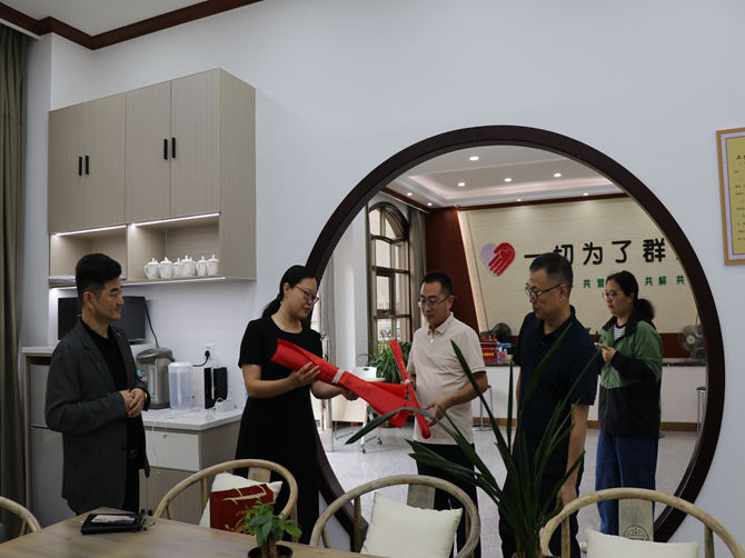翁晓丽一行在党委书记陈孝明的陪同下先后参观了综合服务大厅、新业态初心驿站、综治驿站、母亲学堂、新业态劳动者服务中心工会委员会等各职能办公室,浏览了党建等相关台账资料,并在一楼会议室召开了座谈会。