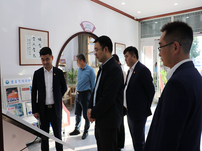 刘兴维一行在服务站站长陈孝明的陪同下,先后参观了户外宣传栏、综合服务大厅、智慧党建、综治驿站、向日葵心理聊天室、新业态工会委员会办公室、母亲学堂、红色驿站等各职能办公室,浏览了服务站、党建等相关台账资料,并在三楼会议室召开座谈会。